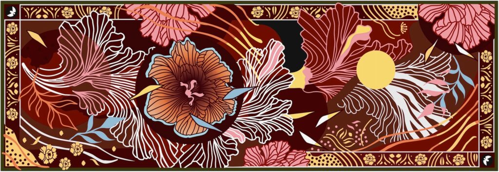 Dominata dai toni del rosa e dell’amaranto, la composizione di quest’anno, intitolata Rhizome, rappresenterà un insieme corolle e rizomi basati sugli stilemi tipici dell’Art Nouveau: secondo l’artista, il soggetto selezionato è il simbolo della complessità e dell’interconnessione dei quartieri di Bruxelles. Ogni linea sul “Tapis” rappresenterà una strada che si interseca con le altre, creando una rete che esprime la diversità culturale e la vitalità urbana della città.