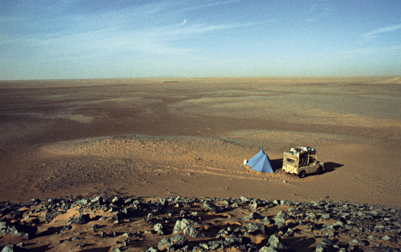 Partendo da Bologna con una vecchia Land Rover militare, Paolo Gotti raggiunge Tunisi per poi spostarsi in Algeria, prima ad Algeri e poi a Ghardaïa. Qui inizia il suo attraversamento del deserto del Sahara: migliaia di chilometri di sabbia e cielo, dove incontra più volte il popolo nomade dei Tuareg. Da lì, ha affrontato l’intricata foresta del Ghana e la discesa a 2.000 metri nel buio della terra, in quella miniera fatta di ferro, roccia e luccichi di metallo prezioso. Paolo Gotti tornerà in Italia dopo quasi cinque mesi grazie a un passaggio su una nave cargo carica di tronchi battente bandiera liberiana, che – salpando dalla Costa D’Avorio – lo sbarcherà dopo 17 giorni al porto di Ravenna.